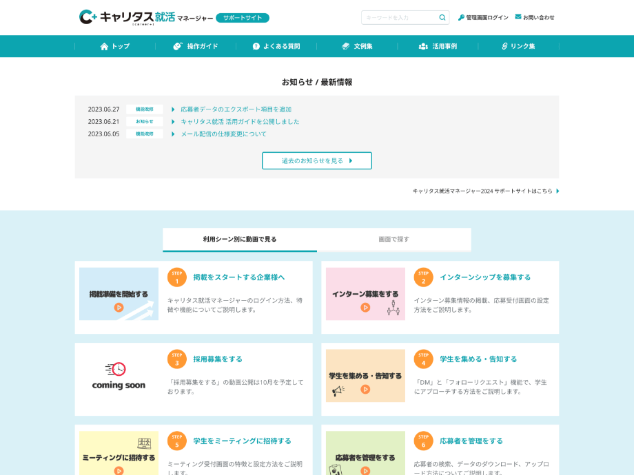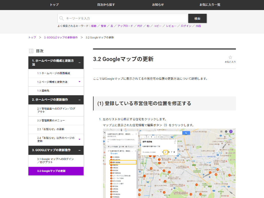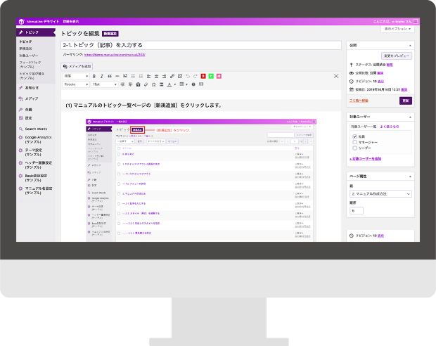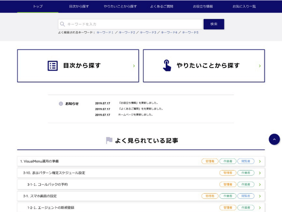 デモサイトを見るユーザーが利用するWebマニュアルの画面をご確認いただけます。